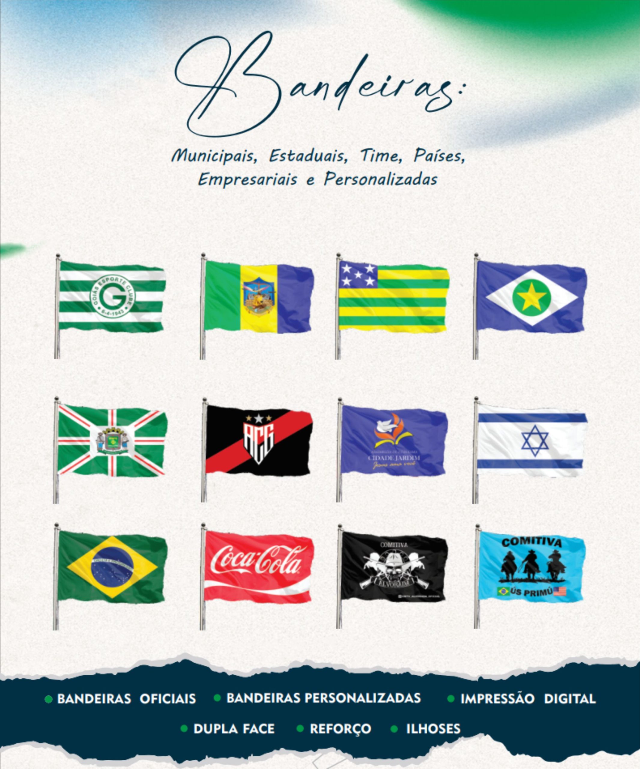 Bandeiras Municipais, Estaduais, Time, Países, Empresariais e Personalizadas.